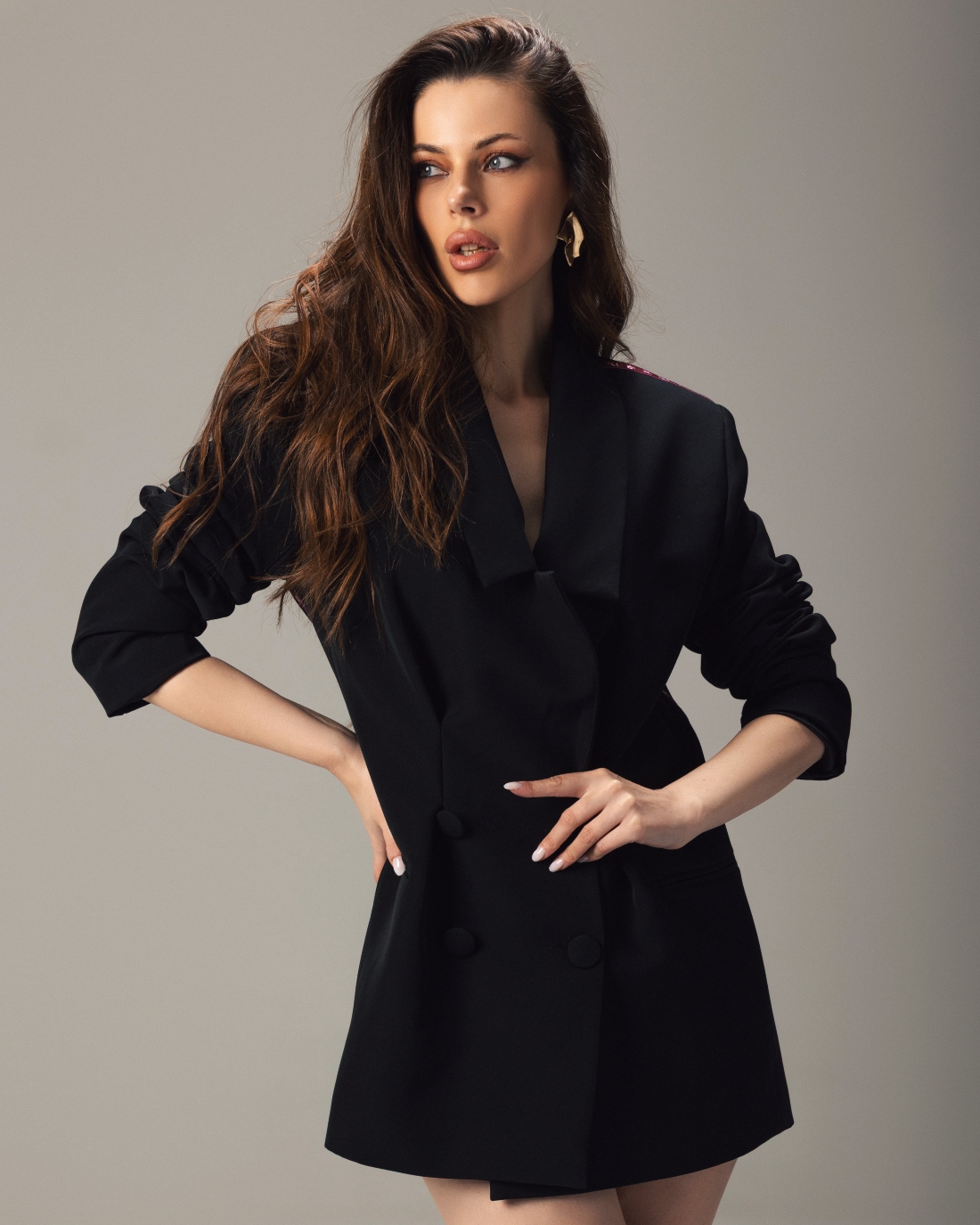 Ovaj crni dupli sako donosi strogu liniju i izraženu siluetu.