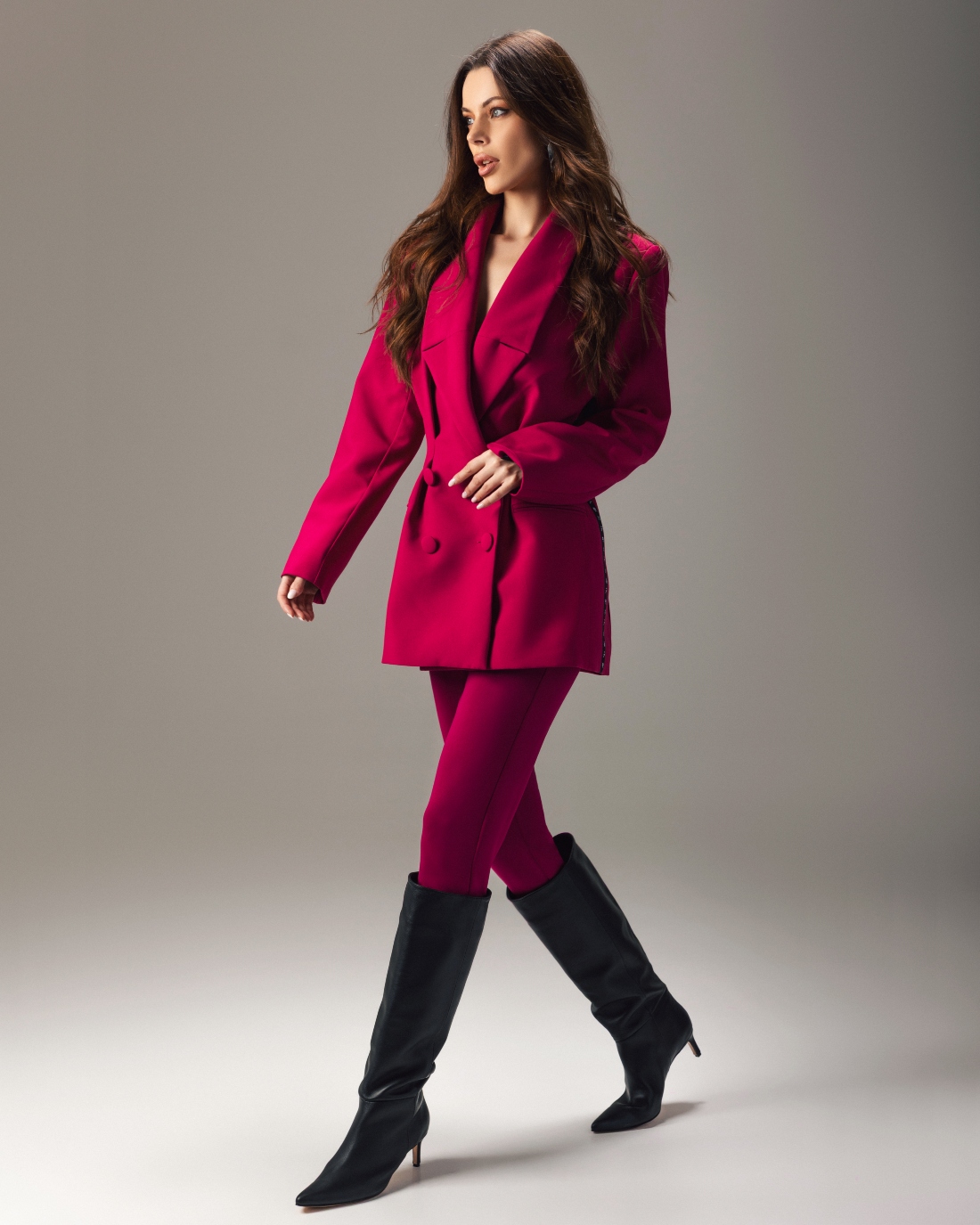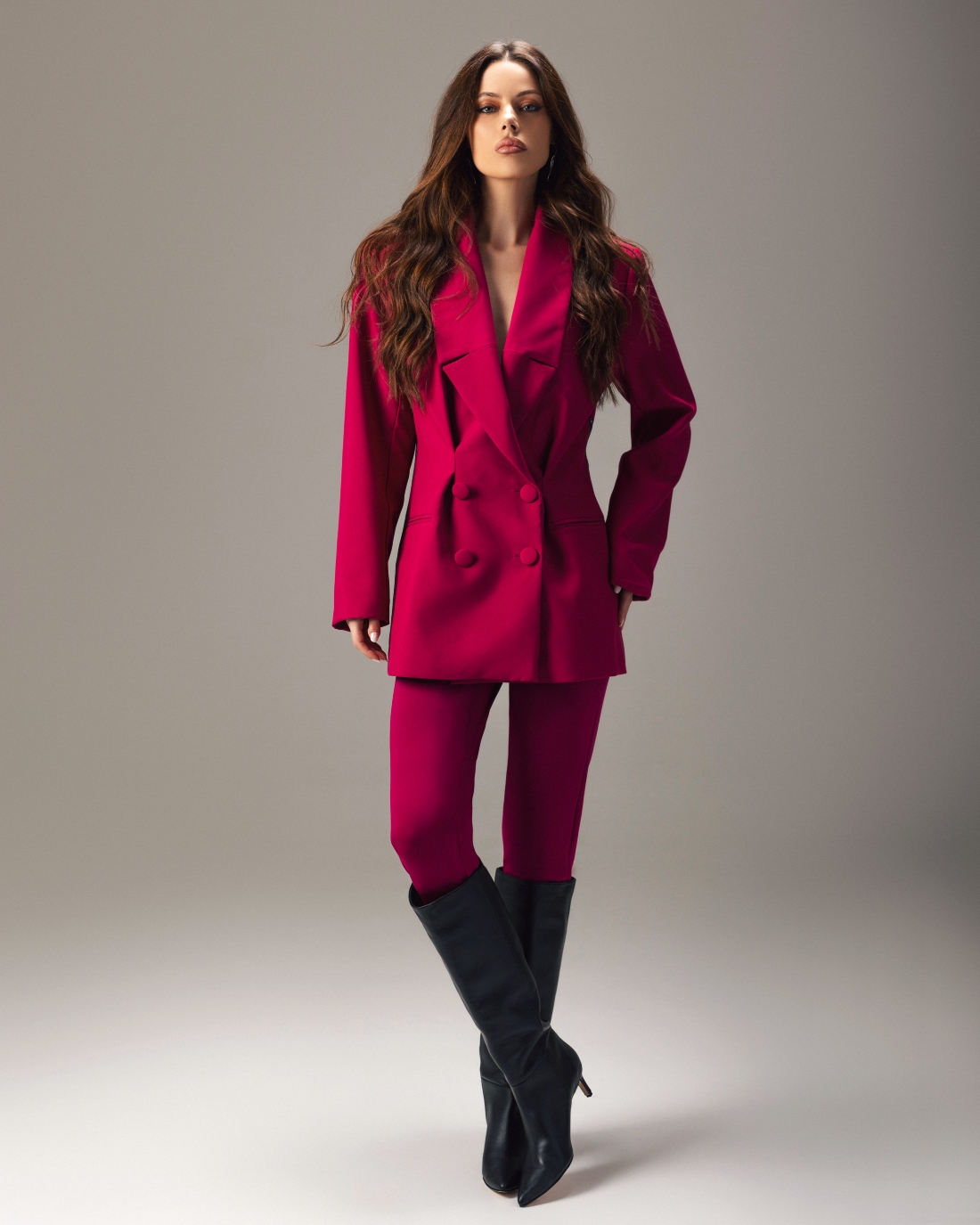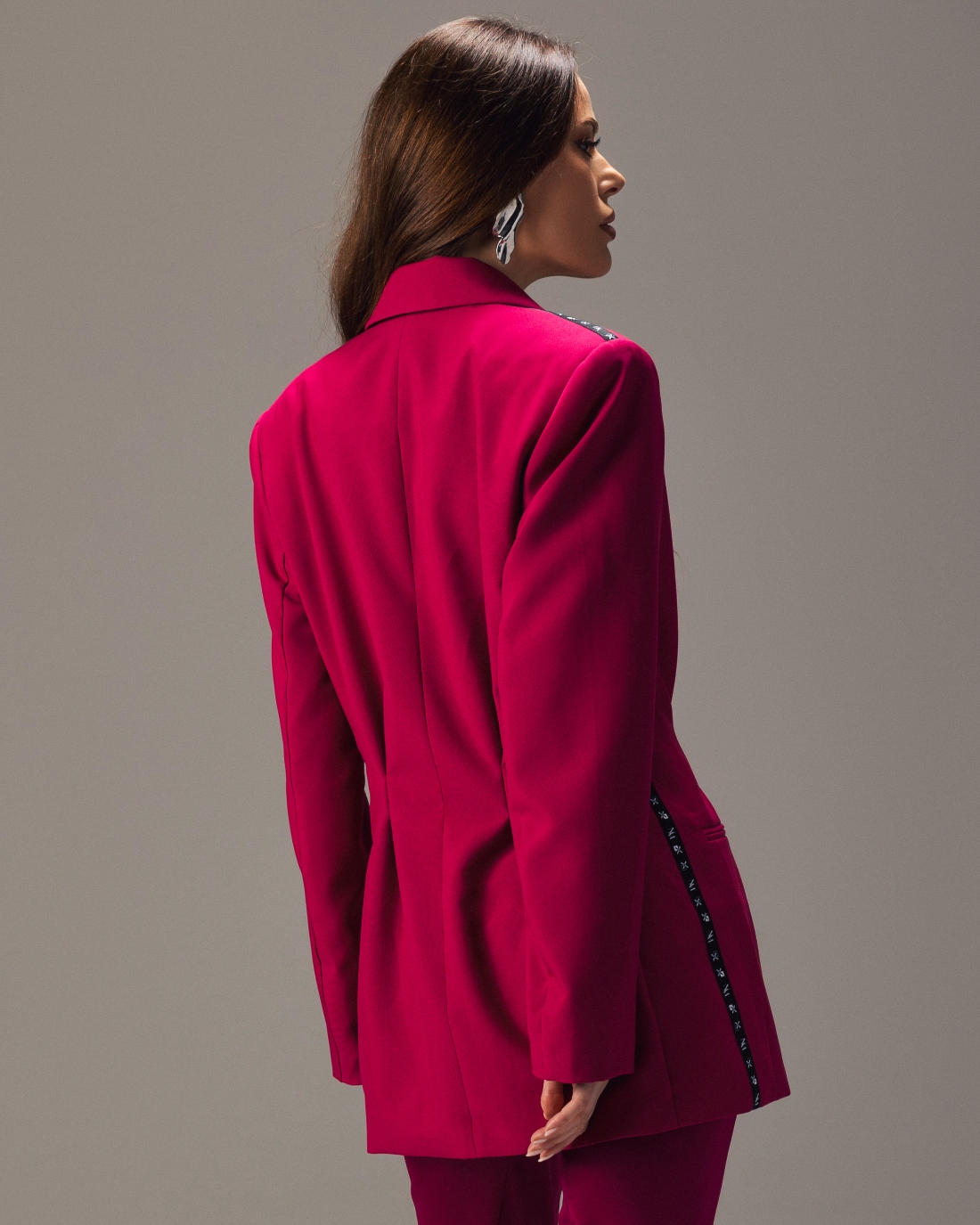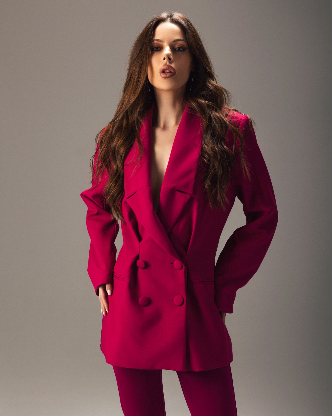 Ovaj sako u intenzivnoj malina boji dolazi sa dvorednim kopčanjem, naglašenim strukom i oversized dugmadima.